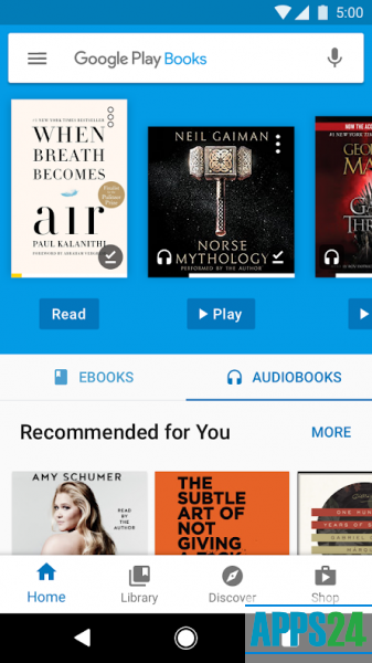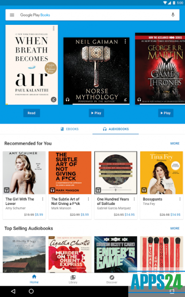 Google Play Books es un servicio para dispositivos Android que te da acceso a una amplia variedad de libros electrónicos y de audio. La biblioteca incluye libros de ficción y ciencia, cómics, libros de texto, etc.
